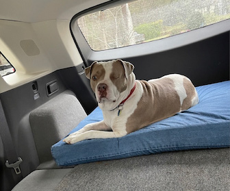 “Hawkeye is doing great! We are calling him “Buddy” now. Every day, we are seeing positive improvements in his behavior and personality. He is a very calm and loving dog. He is eating well and sleeps soundly through the night. He is great with our grandkids and travels very well. He is headstrong, but we couldn’t have picked a better fit for our family.”