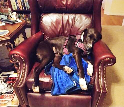 The funny thing is she has picked my husband as her favorite human – she’s in his lap right now. Normally, I’m the dog’s best friend, so he’s enjoying the change.”