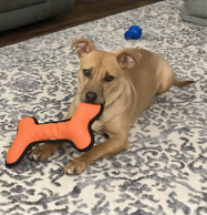 “Augustus McHenry Ringer, aka Lil Bit, has been a complete joy. He loves everyone! He is still pretty mouthy with nibbles on ankles and hands wanting to play or get attention. He absolutely loves my son-in-law and husband. He is very food motivated, so has learned many tricks. Still working on many more. He loves his toys and anyone who will play with him.