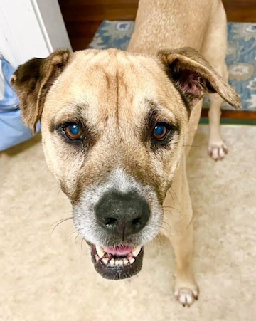 He is seven years old, not exactly a senior by any means, but he is past his puppy stage for sure. He had a dog buddy that was quickly adopted and now he is by himself. This has been very difficult for Boo. He is a big hippo and loves to cuddle! He is house trained and knows commands. He is not a fan of the food at the shelter, but he was a little chubby when he arrived! He would love a home where he could get a few table scraps and a soft bed to lay on. Boo is playful for short bursts but then wants to chill on the couch with the volunteers. He hates being alone in his kennel. It’s so noisy right now, we have no kennels open and the non-stop barking is tough on a dog that had a good home for seven years. Boo has big eyes and when you walk by him he makes eye contact, desperately asking for love. It is so hard seeing him there.