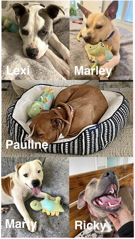 Pitties are by nature eager for connection. If we could only bottle the pure gratitude they express for any of the experiences we can provide. Pauline was snoring away within minutes of settling into her comfy and quiet “at home” bed, Marley played enthusiastically with his toys, Lexi buried herself into the pillows, Ricky loved exploring on our long walks and Marty smiled ear-to-ear all day.