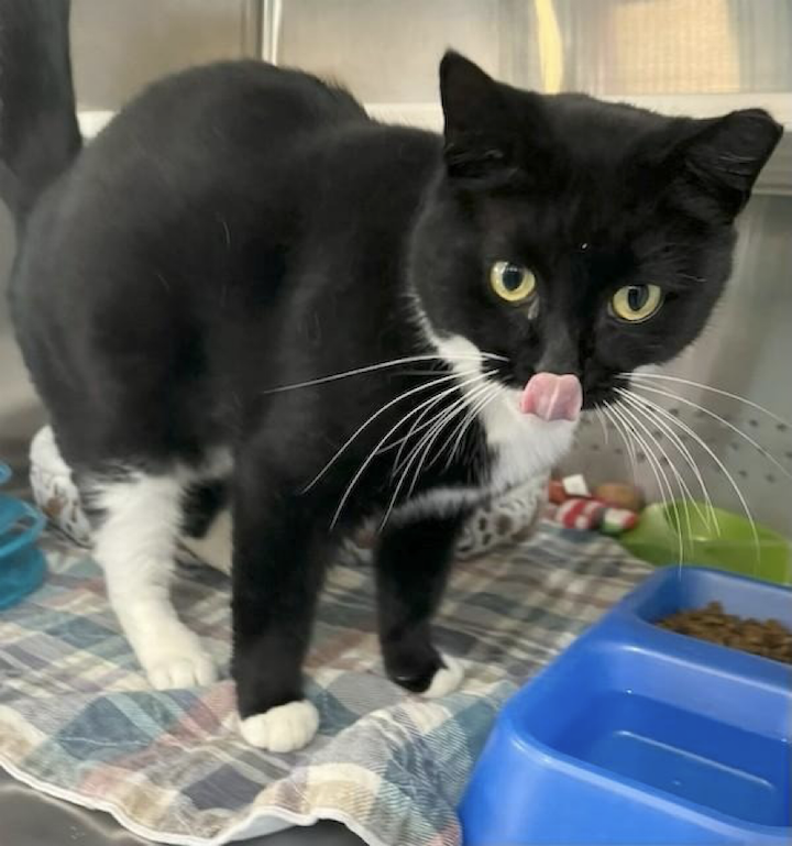 Jack is our snuggly kitty—black with white mittens and whiskers. He meows when he sees staff coming with his breakfast because he’s so excited! He loves to cuddle and purrs with gratefulness for love and attention.