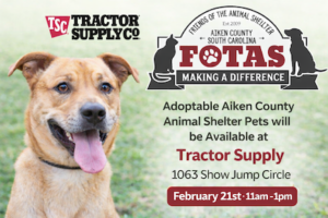 The mission of FOTAS is to support the Aiken County Animal Shelter by promoting animal welfare, responsible pet ownership, and the elimination of euthanasia of all adoptable animals.